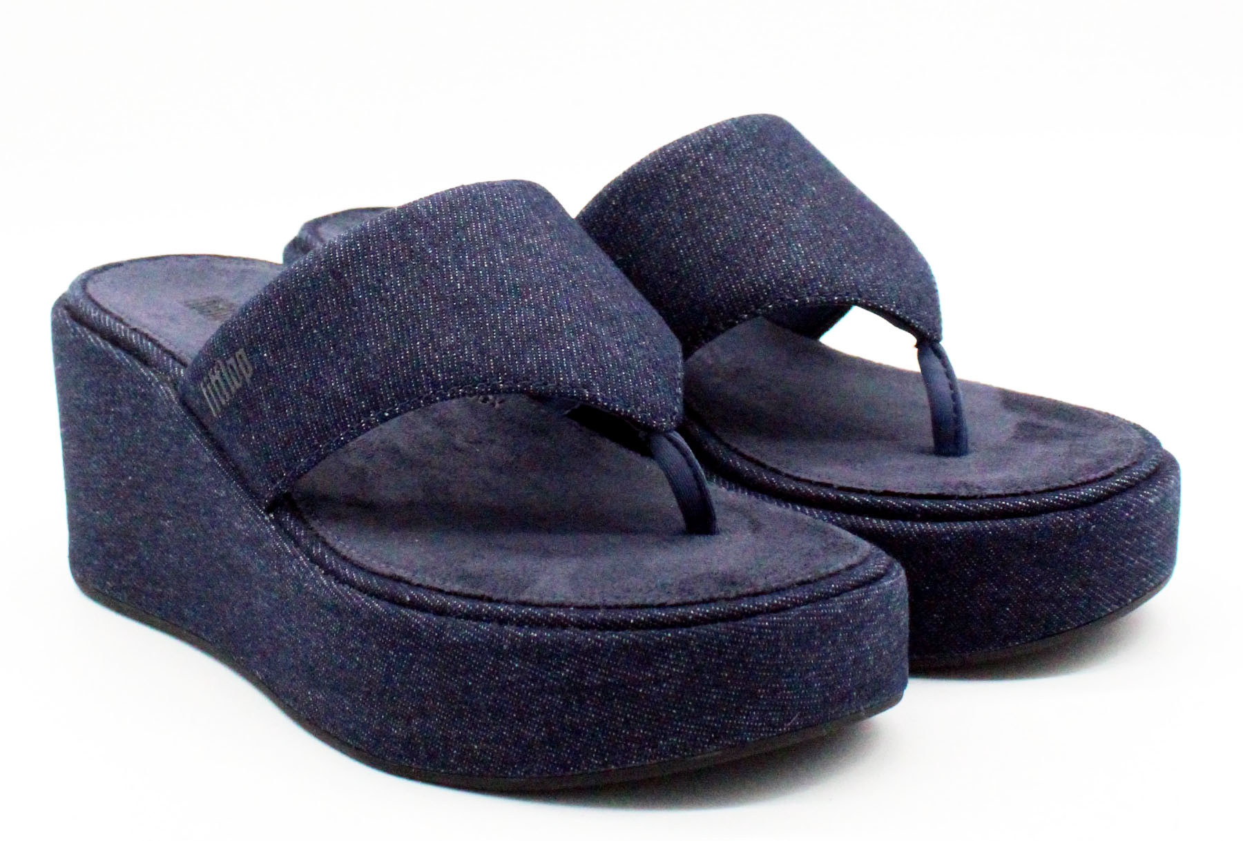 fitflop Plateau Zehentrenner Pantolette Plattforms Denim